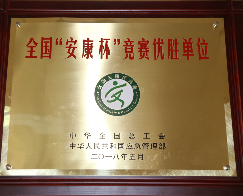 日前,公司被中華全國總工會(huì)、中華人民共和國應(yīng)急管理部聯(lián)合授予全國“安康杯”競(jìng)賽優(yōu)勝單位榮譽(yù)稱號(hào)。