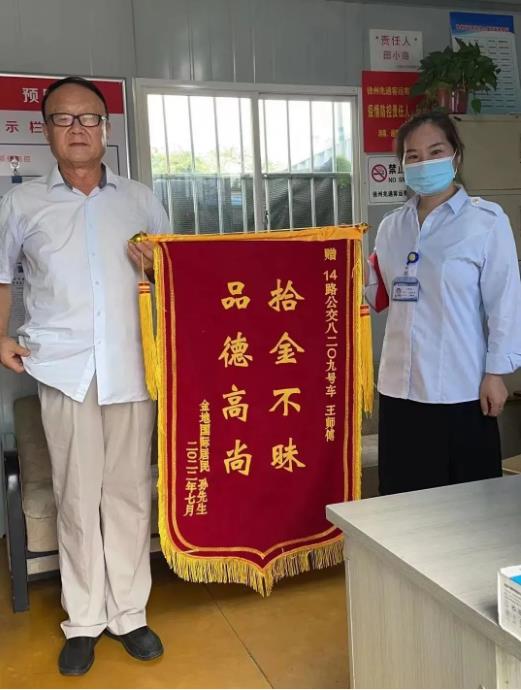 “在這個(gè)智能時(shí)代,手機(jī)丟了真的是寸步難行,感謝14路駕駛員王師傅幫我找到丟失的手機(jī)?!?月29日,市民孫先生手持錦旗來到淮海花木城調(diào)度室,對(duì)王師傅拾金不昧的高尚品德表示感謝。