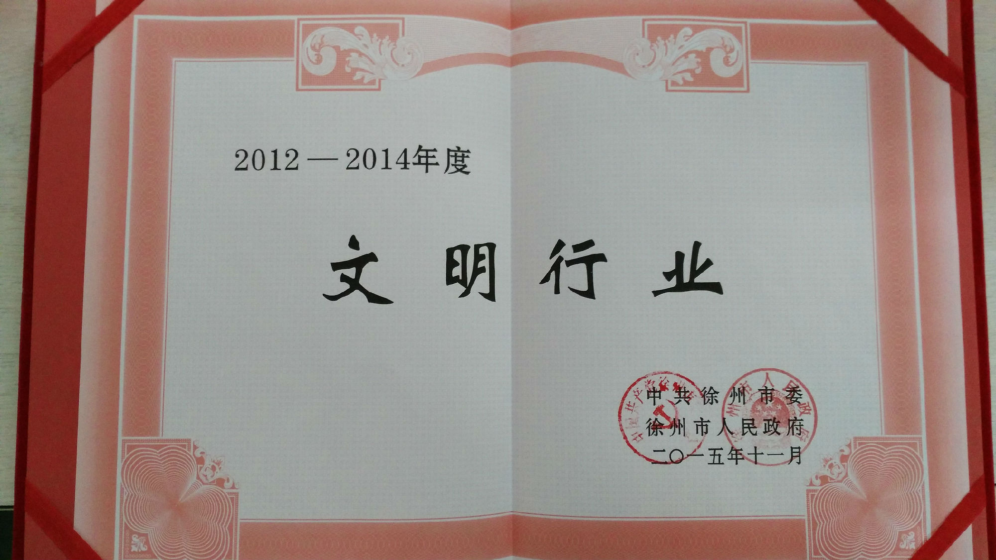 公司榮獲市2012-2014年度文明行業(yè)榮譽(yù)稱號(hào)