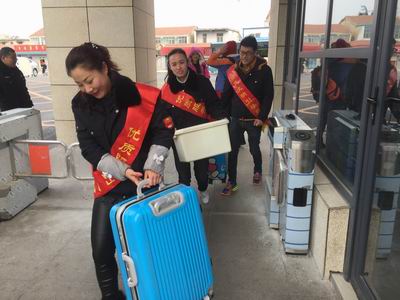 ?xml:namespace>。志愿者們身披綬帶深入各大站點(diǎn)、車場,開展站臺(tái)咨詢,導(dǎo)乘服務(wù),主動(dòng)扶老攜幼,為乘客兌換零錢,共發(fā)放乘車指南1000余份,深受乘客歡迎。圖為賈汪公司志愿者在幫助江蘇安全技術(shù)職業(yè)學(xué)院開學(xué)返校的學(xué)生運(yùn)送行李。