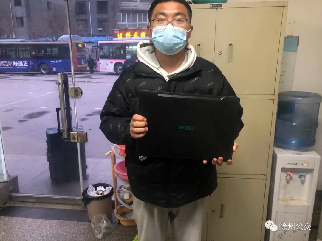 此時(shí),專1路1696號車到達(dá)徐州站,駕駛員王強(qiáng)開始打掃車輛衛(wèi)生、對車廂進(jìn)行通風(fēng)、消毒,忽然,他發(fā)現(xiàn)車廂后座位上有一個(gè)藍(lán)色雙肩背包,打開發(fā)現(xiàn)里面有一臺筆記本電腦。王強(qiáng)隨即撥打車隊(duì)電話報(bào)備,并把背包轉(zhuǎn)交給終點(diǎn)站工作人員登記保管。工作人員在包里找到了失主的聯(lián)系方式,很快聯(lián)系到失主陳先生。
