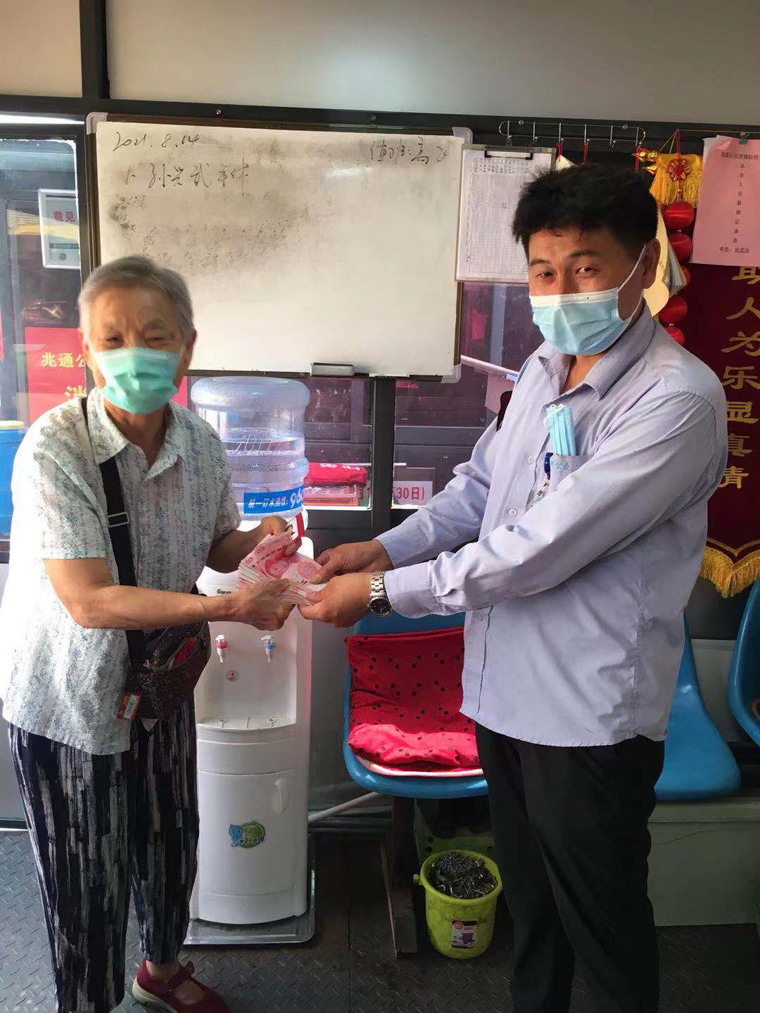 8月14日上午,段世望像往常一樣駕駛61路8294號車從徐村開往宣武市場,在宣武市場車站打掃衛(wèi)生時,在座位下發(fā)現(xiàn)一個錢包,段師傅立即將包交到車站值班室,包內(nèi)裝有身份證及四千余元現(xiàn)金。此時,段師傅正準備返回車廂做出車前準備,迎面碰到了心急如焚尋找失物的老人。
