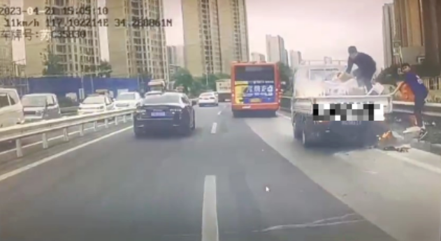 4月21日中午,608路4名駕駛員石守軍、孫晉旭、郝科軍、郝允明駕駛著他們各自的車輛前往火花加氣站進(jìn)行加注燃料,就在返回的途中,忽然看到前方路邊白煙滾滾,當(dāng)距離再靠近一點(diǎn)時(shí)才發(fā)現(xiàn)竟然是一輛小型貨車車廂著火產(chǎn)生的陣陣煙霧,且已經(jīng)有幾個(gè)箱子開始接連燃燒,小貨車駕駛員手里只有一瓶礦泉水,面對火勢即將控制不住,這僅有的一瓶水無疑是杯水車薪,無奈之下,貨車司機(jī)只能慢慢地將著火的紙箱搬下車廂。