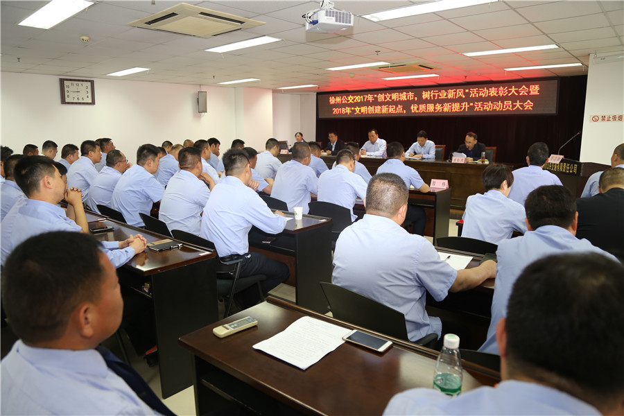 5月10日上午,有限公司召開“2017‘創(chuàng)文明城市、樹行業(yè)新風(fēng)’總結(jié)表彰暨2018‘文明創(chuàng)建新起點,優(yōu)質(zhì)服務(wù)新提升’活動動員大會”,主要任務(wù)是對全公司文明城市創(chuàng)建常態(tài)長效工作進(jìn)行部署,動員全體干部員工認(rèn)清形勢、再鼓干勁,開啟文明創(chuàng)建新征程,再創(chuàng)優(yōu)質(zhì)服務(wù)新提升。公司董事長、總經(jīng)理杜紅軍,工會主席竇同銀,調(diào)研員張同剛、祖伯鴻,相關(guān)部室負(fù)責(zé)人,營運公司經(jīng)理、書記、服務(wù)主管,車隊長、先進(jìn)個人代表等87人參加了會議。