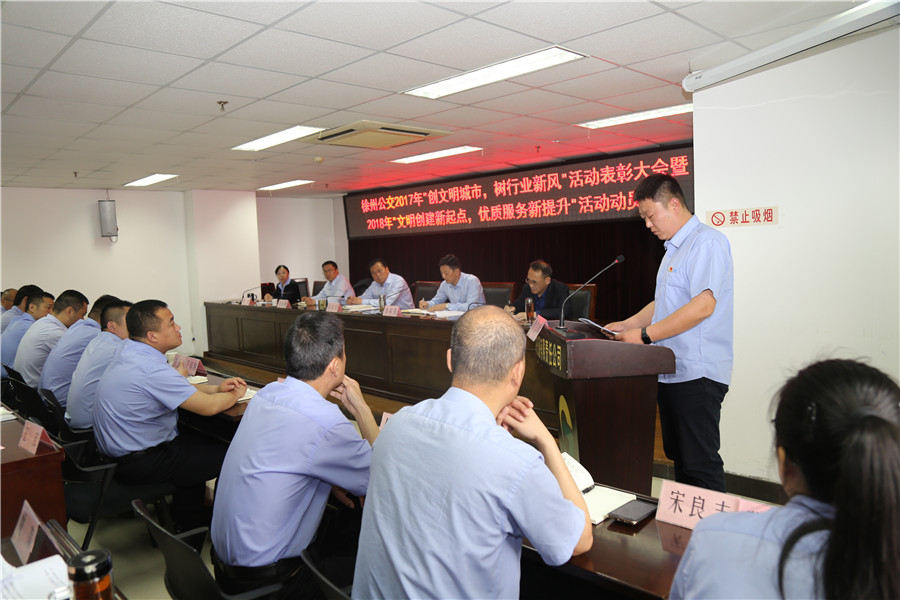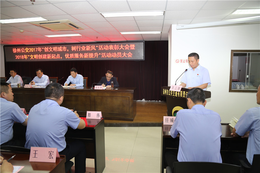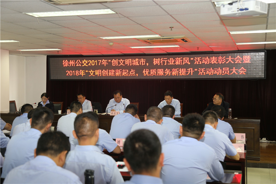最后,公司董事長、總經(jīng)理杜紅軍作重要講話,對2017年文明城市創(chuàng)建工作進(jìn)行了總結(jié),對公交廣大干部員工在創(chuàng)建中的辛勤付出和取得的成績給予了充分肯定。同時,分析了目前的創(chuàng)建形勢,提出了新時期工作要求。他強(qiáng)調(diào):各單位要不斷總結(jié)創(chuàng)建經(jīng)驗,用制度鞏固好已有的創(chuàng)建成果;要營造良好氛圍,用核心價值觀帶動行業(yè)文明新風(fēng);要深化創(chuàng)建內(nèi)涵,用優(yōu)質(zhì)服務(wù)打造公交文明新亮點。要以全國文明城市創(chuàng)建成功為契機(jī),以常態(tài)長效為目標(biāo),努力打造溫馨公交、安全公交、便捷公交、智慧公交,以高質(zhì)量服務(wù),實現(xiàn)群眾滿意;以高標(biāo)準(zhǔn)要求,優(yōu)化公交形象,在流動的車廂傳播精神文明,譜寫出新時期公交行業(yè)文明創(chuàng)建的動人樂章,為加快建設(shè)“強(qiáng)富美高”新徐州交出公交人的滿意答卷!