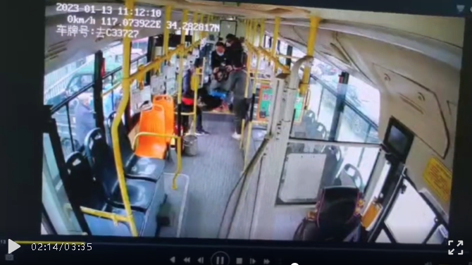在保證安全的情況下薦彬駕駛著車輛往大彭醫(yī)院方向駛?cè)?,并招呼乘客幫助打開窗戶通風(fēng)。與此同時(shí)他還不忘安撫乘客情緒,也向乘客做好解釋:“如果著急就請(qǐng)下車。”時(shí)間分秒變動(dòng),車內(nèi)視頻記錄顯示:公交車平穩(wěn)行駛,到達(dá)大彭醫(yī)院后,薦彬?qū)④囕v停好,一邊打聽一邊跑向急診室,他說明情況后,兩位急救醫(yī)生推著擔(dān)架車也跟著跑了出來。由于車廂內(nèi)空間有限,擔(dān)架車無法進(jìn)入車廂,而此時(shí)乘客情況危急薦彬沒有多想,叫上一名乘客,把病人一起抬下了車。薦彬說,自己開公交車16年,也是頭一次遇到這樣的事,當(dāng)時(shí)看到乘客接受救治后,自己緊繃的神經(jīng)才放松下來。