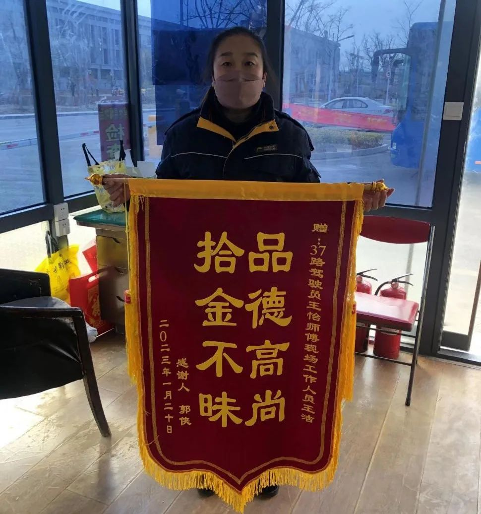 1月19日,失主郭女士通過公交集團(tuán)熱線電話聯(lián)系到車隊(duì)管理人員,經(jīng)過車隊(duì)的查詢落實(shí)后,郭女士與工作人員約好時(shí)間前來取回失物。1月20日,郭女士送來了一面錦旗錦旗,并撥打了熱線電話12345表?yè)P(yáng)駕駛員王怡拾金不昧的精神。王怡熱心助人的行為充分體現(xiàn)了徐州公交駕駛員高尚的道德品質(zhì),他用實(shí)際行動(dòng)體現(xiàn)了 “向善、向美、向上”的價(jià)值追求,在平凡的崗位上傳遞公交正能量。